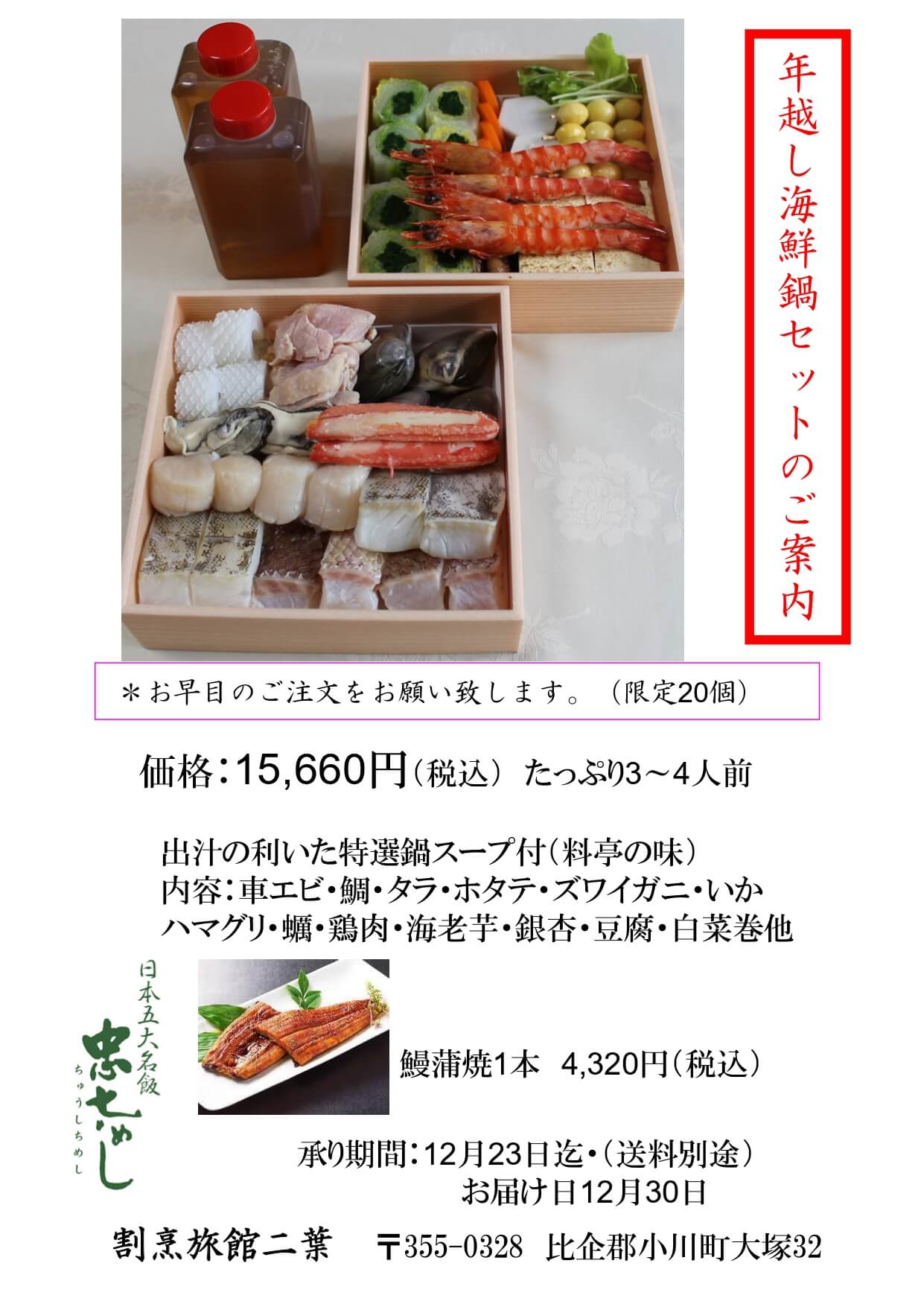 調理長が丹精込めてご用意する年越し海鮮鍋セットをご案内します。